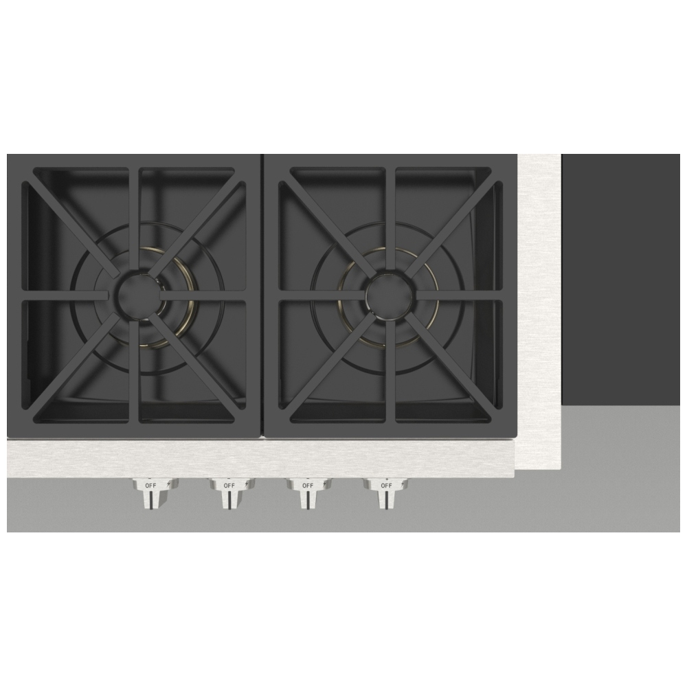 The sophisticated gas range top combines exceptional power, precision, and versatility to redefine your culinary experience. Featuring six advanced Crescendo burners, this range top delivers five levels of cooking power, ensuring the perfect balance of heat and even distribution for any cooking need. Whether you're tempering chocolate or searing meat at an intense 20,000 BTU, the burner design provides precise control and efficiency.