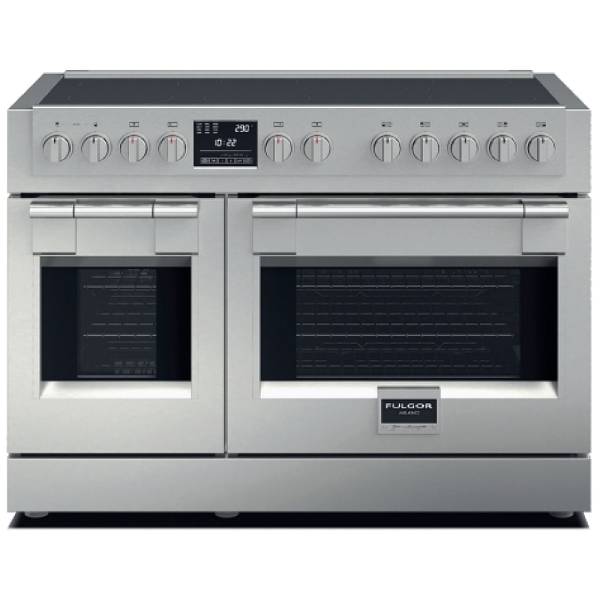 Fulgor Milano F6PIR487S1 Induction Range, 48 inch Exterior Width, Self Clean, Convection, 7.1 cu. ft. Capacity, 2 Ovens, Stainless Steel colour Soft Close Door, Telescopic Gliding Extension Rack, True European Convection, Temperature Probe