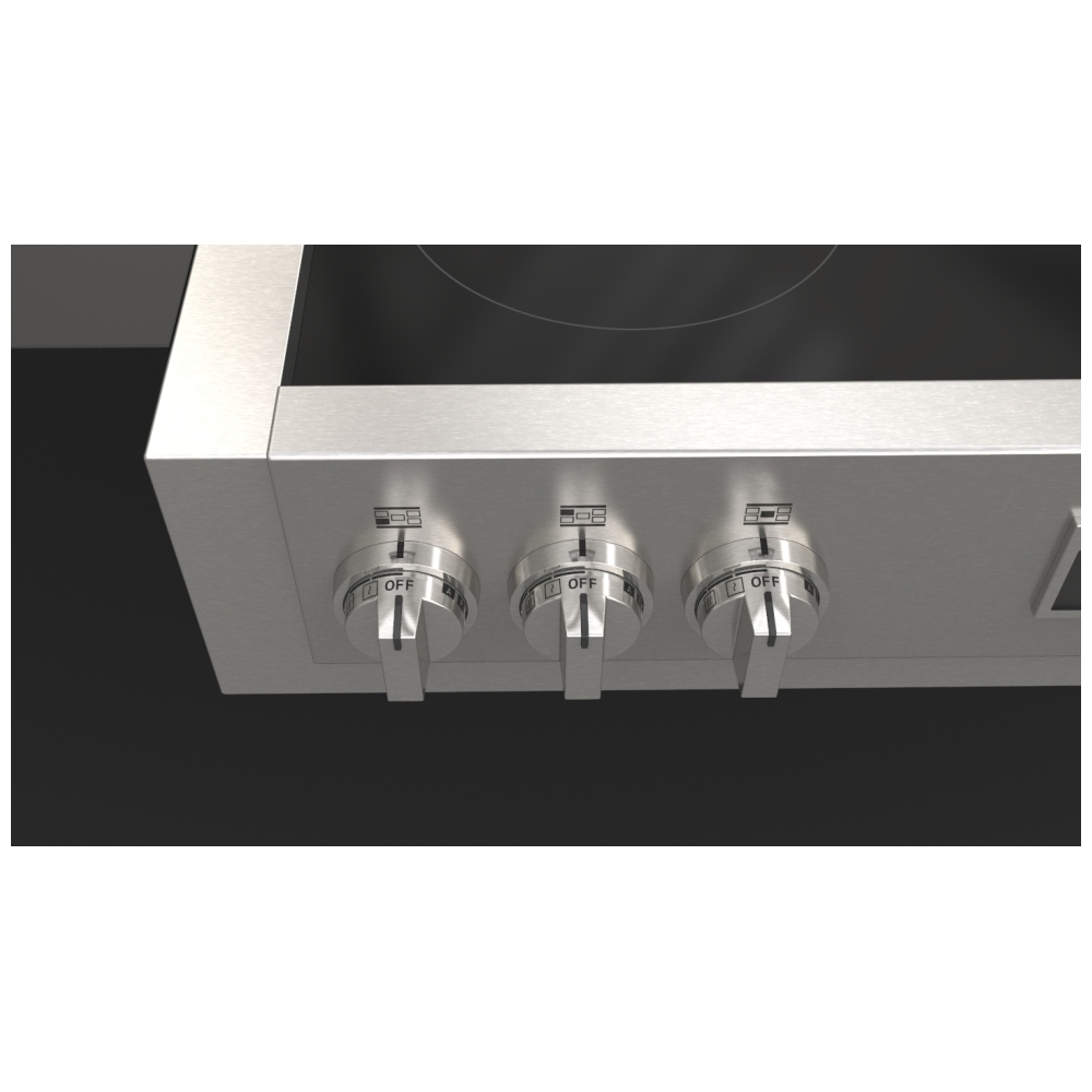 Designed with advanced induction technology, the range top provides precise temperature control, instant heat response, and exceptional energy efficiency. Each of the four single cooking zones operates independently, while the powerful Dual Max Power burner with an 11-inch diameter accommodates larger cookware, ensuring high-performance cooking for any culinary task. The ergonomic steel knobs offer smooth and accurate adjustment of heat levels, giving you complete control over your cooking experience.
