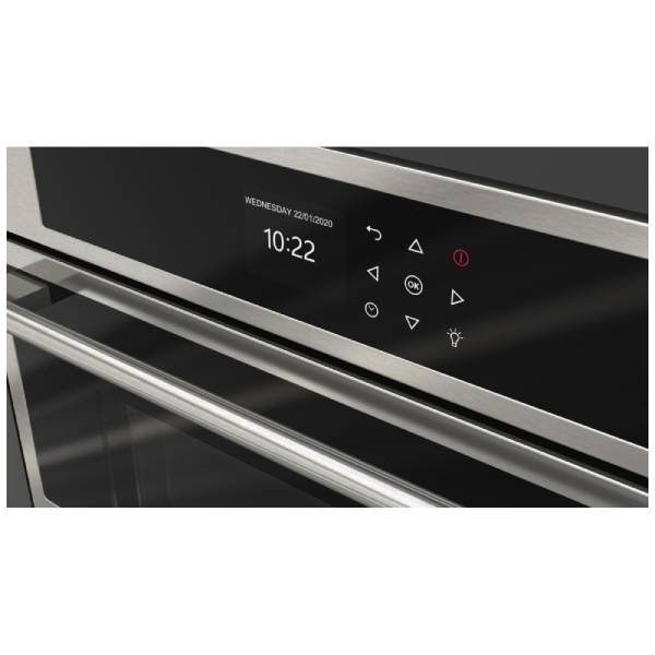 In terms of performance, the oven offers 10 combined cooking functions, including automatic cooking with pre-selected and customizable recipes based on weight, temperature, and cooking time. The microwave function offers six levels, while the fan-assisted and combined cooking modes (microwave and grill) allow for even and versatile cooking. The oven also features defrosting options by time and weight for added convenience.