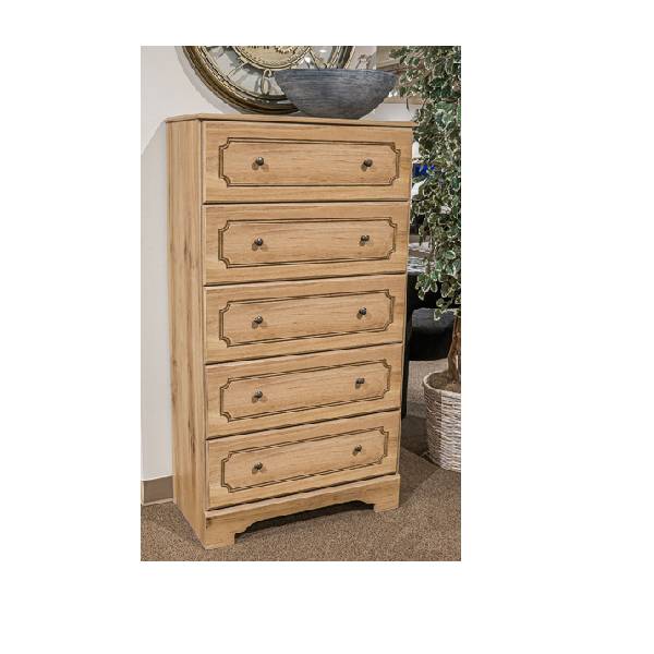 Offering five spacious, smooth-gliding drawers, this chest provides generous storage for clothing, accessories, and daily essentials. Each drawer is crafted with dovetail construction and ball-bearing side glides, ensuring durability and effortless operation. The fully finished interiors add a touch of luxury, while the robust construction guarantees lasting performance.