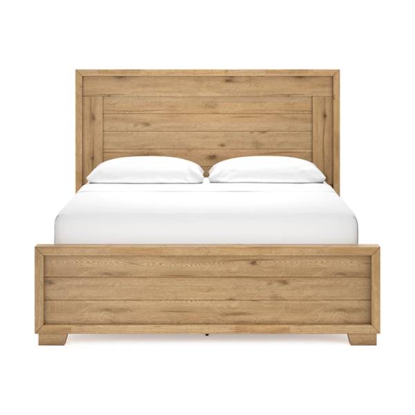 The Galliden California King Panel Bed brings a sophisticated, rustic charm to your bedroom, combining the natural beauty of wood with the clean lines of urban contemporary design. Its unique craftsmanship showcases natural details in the wood, making each piece truly one of a kind. The bed’s organic beauty is further enhanced by a glazed natural light oak finish, which accentuates the grain and texture of the wood, creating a serene and welcoming ambiance in your space.