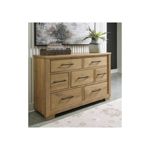 Graceful design and modern accents define the Galliden Dresser.Spacious layout and robust construction offer ample storage.Versatile functionality makes it a perfect centerpiece for any contemporary space.