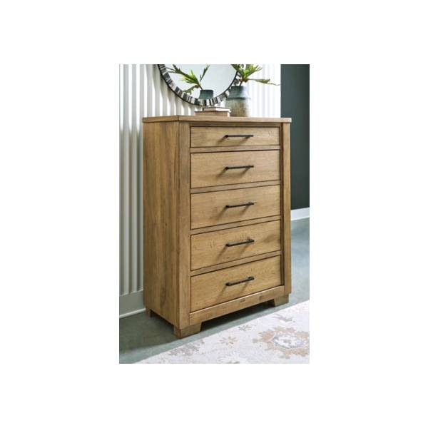The Galliden Five Drawer Chest offers a spacious storage solution with an elegant design that enhances any room.Crafted from durable materials, it provides functional organization with five smooth-gliding drawers.Its sturdy construction ensures long-lasting stability and timeless appeal.