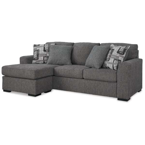 The sofa chaise features a sturdy corner-blocked frame for lasting durability, while its attached back and reversible seat cushions, filled with high-quality foam wrapped in poly fiber, provide superior comfort and support. The chaise can be positioned on either side, thanks to its reversible seat cushion and movable ottoman, allowing for flexible arrangement options. Soft polyester upholstery enhances the overall coziness, and the included accent pillows, filled with plush polyfill, add a decorative touch. The exposed feet, finished in faux wood, complement the sleek yet inviting design. Built with a platform foundation system, this sofa chaise resists sagging three times better than traditional spring systems, maintaining a smooth, wrinkle-free look over time.