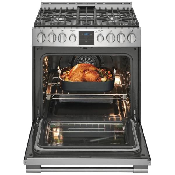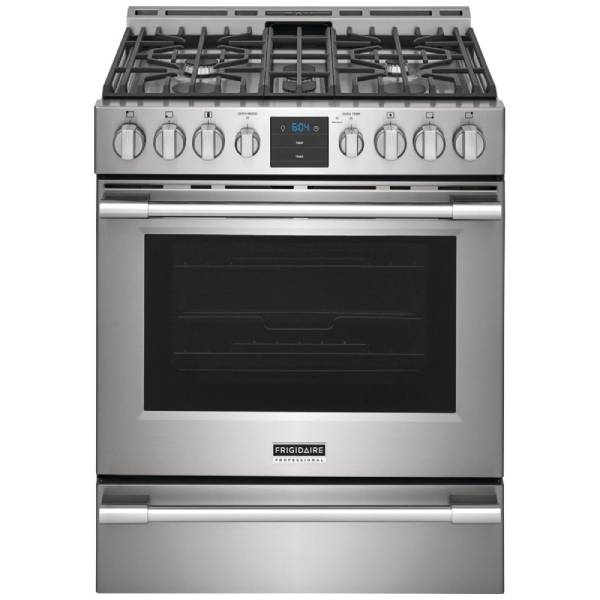 Frigidaire Professional PCFG3078AF Gas Range, Gas, 30 inch Exterior Width, Self Clean, Convection, 5 Burners, 5.6 cu. ft. Capacity, Storage Drawer, Air Fry, 1 Ovens, Stainless Steel colour Air Fry tray included, True European Convection, Temperature Probe, Telescopic Gliding Extension Rack