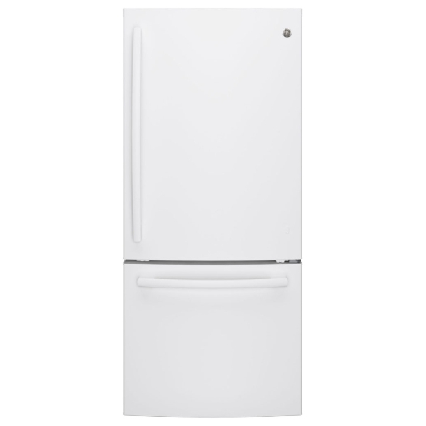GE GDE21DGKWW Bottom Freezer Refrigerator, 30 inch Width, ENERGY STAR Certified, 20.9 cu. ft. Capacity, White colour Multi-Shelf Air Management Tower, Frost Guard