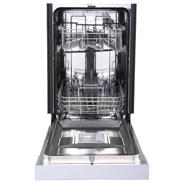 The interior is crafted from durable stainless steel, providing both a sophisticated look and long-lasting performance. This material is highly resistant to stains and odors, keeping your dishwasher cleaner over time. The unit operates at a quiet 52 dB, meaning you can run it any time of day or night without disturbing your household. Its full console design features easy-to-use controls, allowing you to select wash options and check the status of each cycle at a glance.