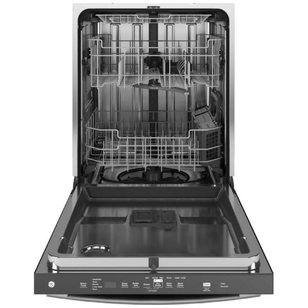 A key feature of the GE GBF655SMPES is the Piranha Hard Food Disposer, which grinds any leftover food particles, so you can skip pre-rinsing. This powerful disposer ensures a more thorough cleaning for consistently sparkling results. The Steam Prewash function is another excellent addition, using hot steam to loosen and remove tough stains before the main wash cycle, so your dishes come out spotless every time. For times when you have a smaller load, the Half Load feature conserves water and energy, making it ideal for quick, light washes.