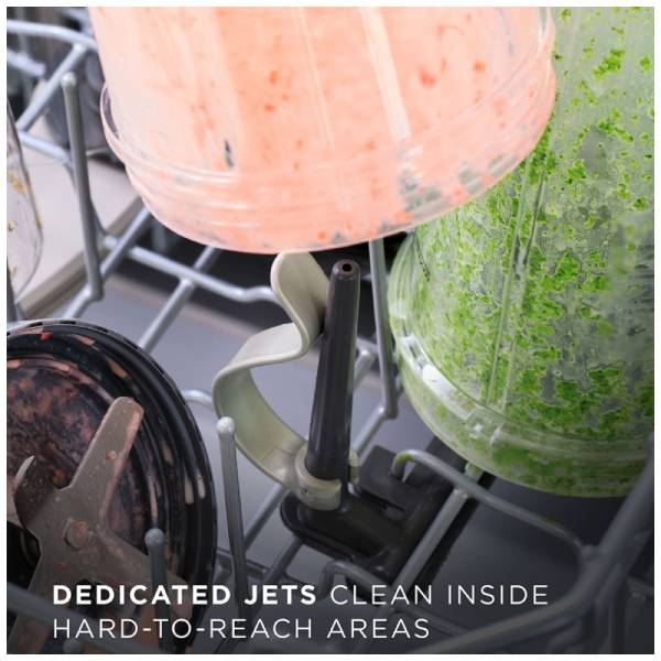 The dishwasher’s bottle jets ensure a deep clean for tall items, narrow glasses, jars, and more. Each of the four bottle jets in the upper rack directs water and detergent to hard-to-reach areas.