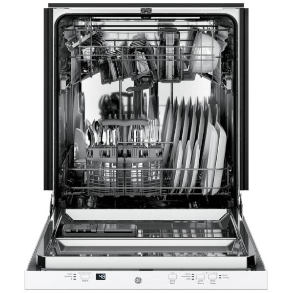 The GE GDT225SGLWW Dishwasher combines practicality and performance in a sleek, modern design. With a 24-inch exterior width, this dishwasher is designed to fit seamlessly into standard kitchen spaces, making it an excellent choice for households looking for an efficient yet stylish appliance. The fully integrated control panel ensures a clean, streamlined look while providing easy access to all the dishwasher's settings and features.