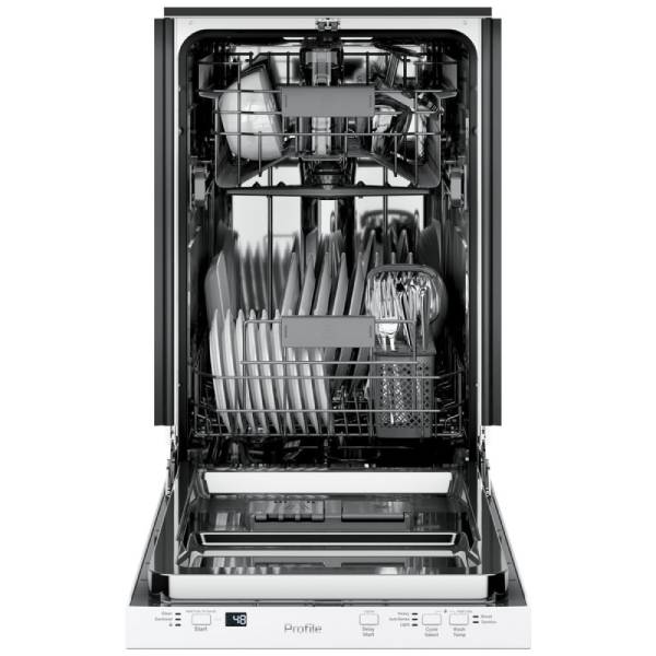 The GE Profile PDT145SGLWW Dishwasher is designed to provide exceptional cleaning performance in a compact and efficient package. With an 18-inch exterior width, this dishwasher is ideal for those who need a space-saving solution without sacrificing power or efficiency. Its fully integrated design ensures that it blends seamlessly with your kitchen cabinetry, creating a sleek, modern look while maintaining a high level of functionality. The stainless steel interior not only offers durability and a polished appearance but also enhances drying efficiency by retaining heat, which helps dishes dry faster.