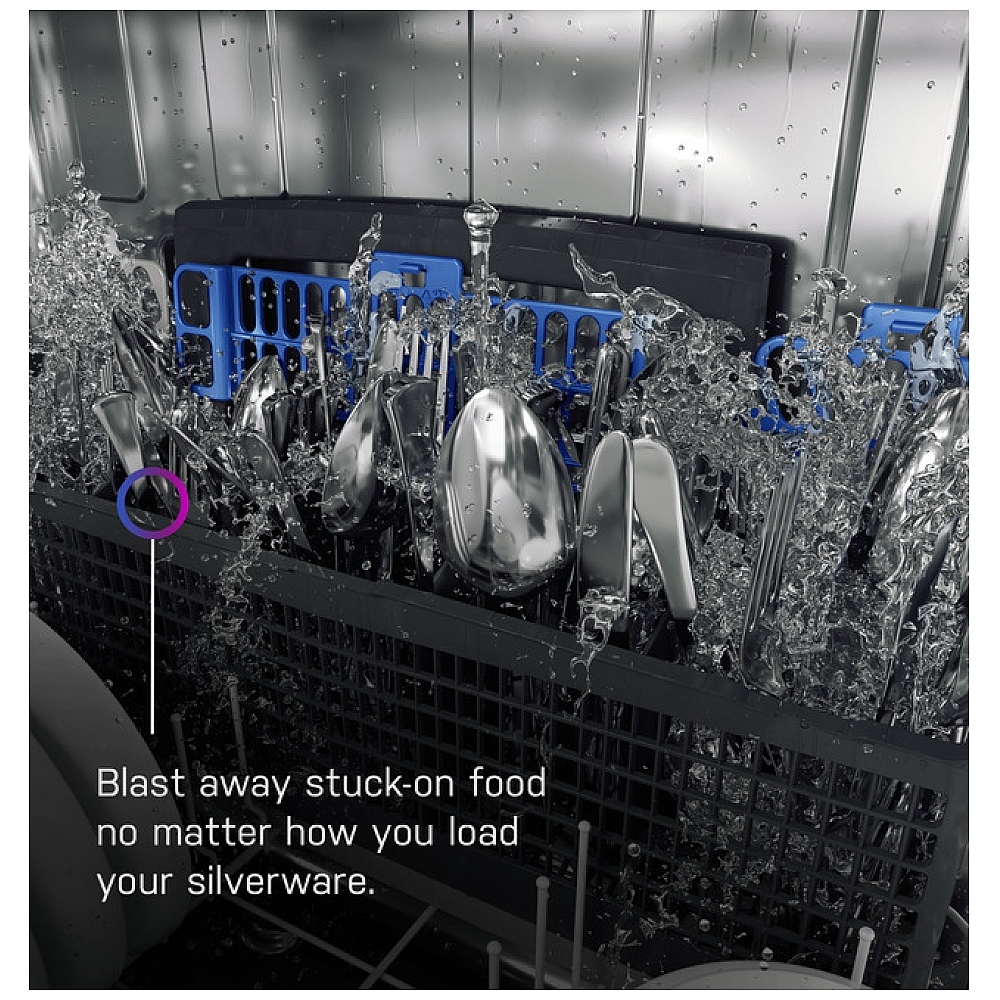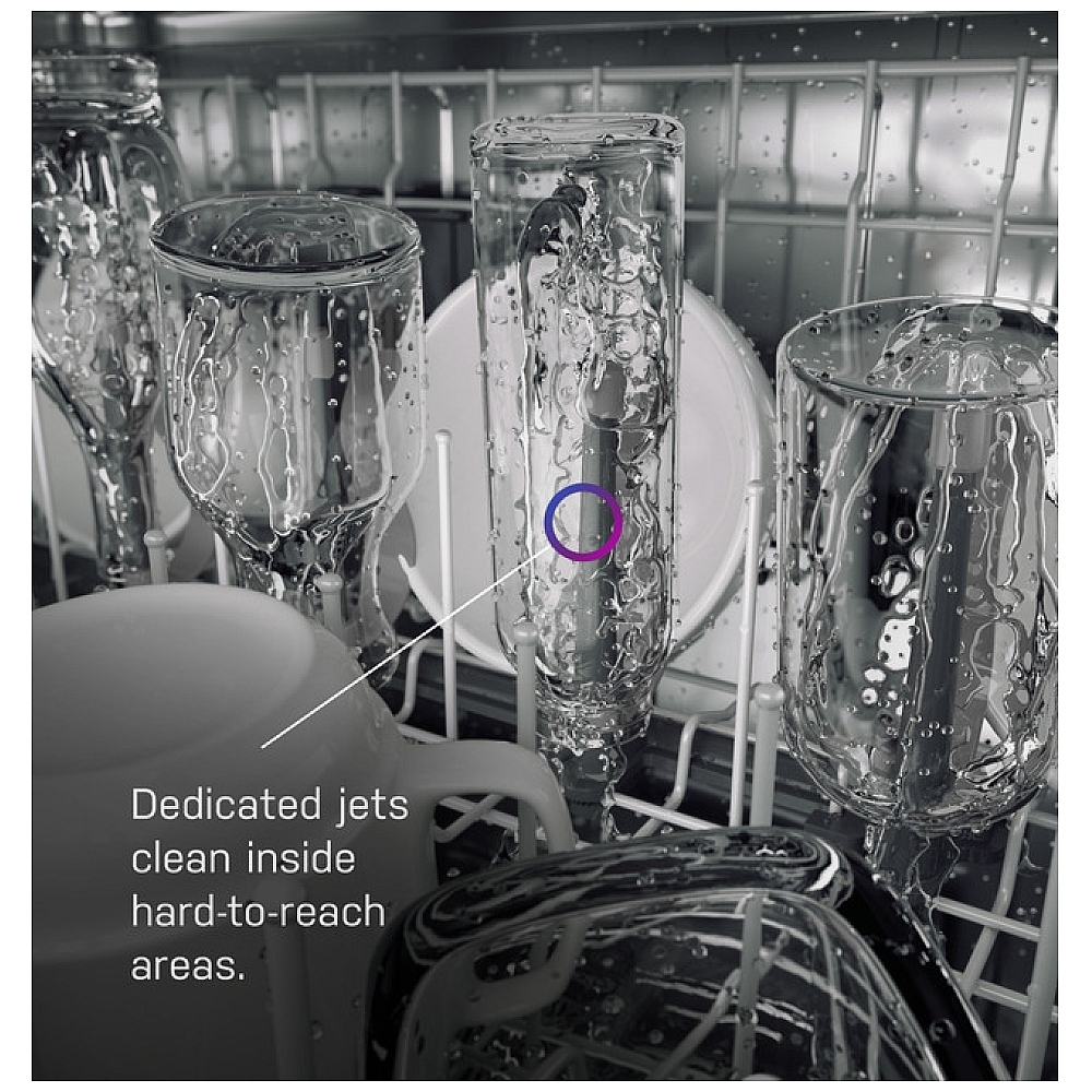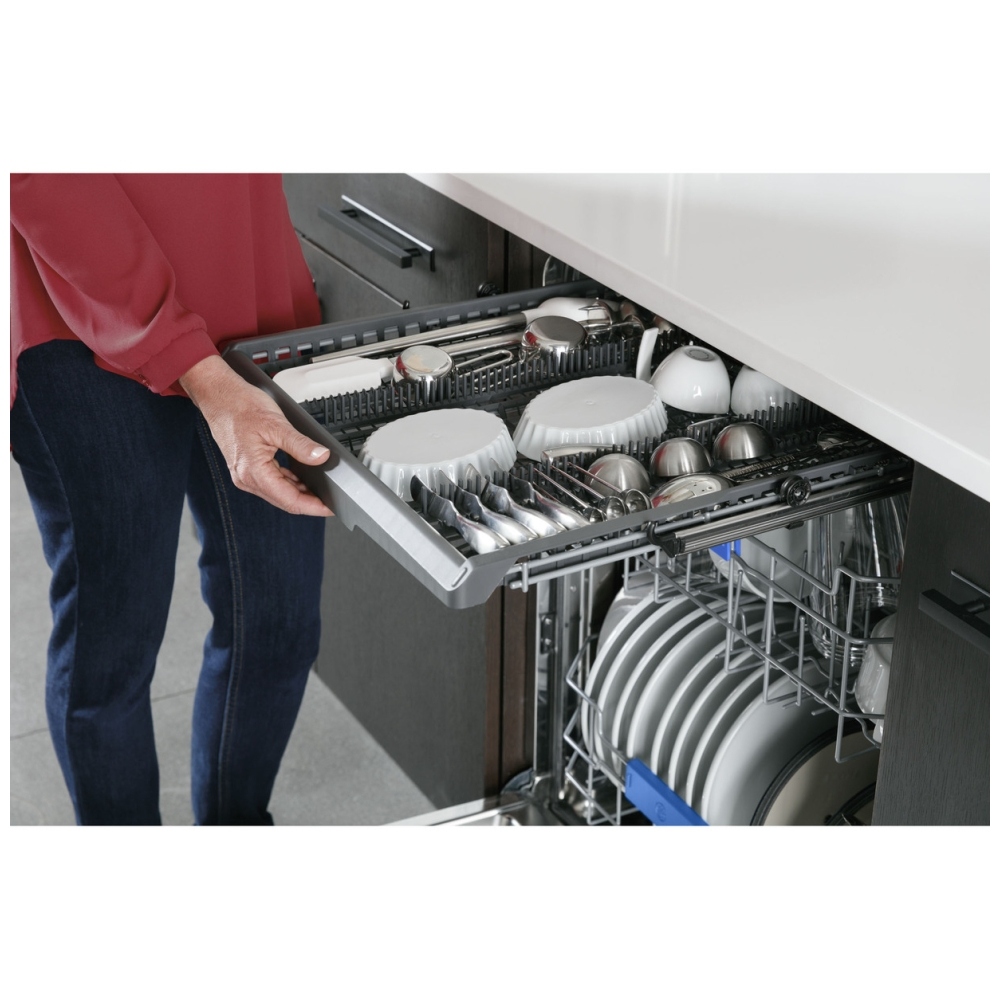 Additional features like the Deep Clean Silverware Jets ensure thorough cleaning, while the built-in third rack adds more flexibility for washing utensils, lids, and other small items. The dishwasher also includes bottle wash jets, which provide a deep clean for tall, narrow items like bottles, glasses, and jars, targeting hard-to-reach areas. With fingerprint-resistant stainless steel, the PDT755SYRFS stays looking clean and new with minimal effort.