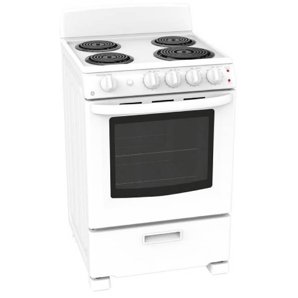 GE JCAS300DMWW Electric Range, 24 inch Exterior Width, 4 Burners, 2.9 cu. ft. Capacity, Storage Drawer, 1 Ovens, White colour