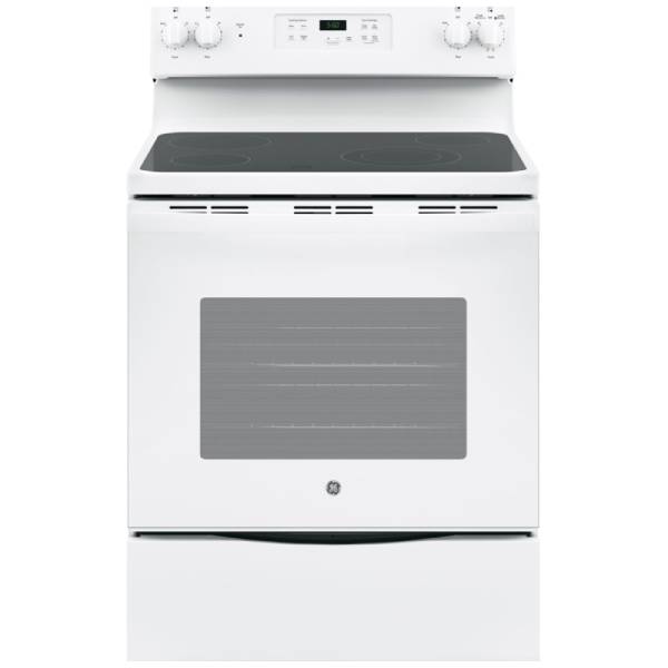 GE JCB830DKWW Electric Range, Electric, 30 inch Exterior Width, Self Clean, Convection, 4 Burners, 5.0 cu. ft. Capacity, Storage Drawer, 1 Ovens, White colour