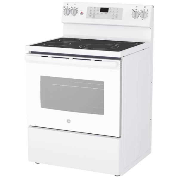 GE JCB830DVWW Electric Range, 30 inch Exterior Width, Self Clean, Convection, 4 Burners, 5.0 cu. ft. Capacity, Storage Drawer, Air Fry, 1 Ovens, White colour