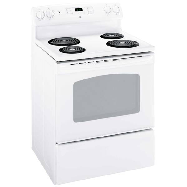 GE JCBS280DMWW Electric Range, 30 inch Exterior Width, 4 Burners, 5.0 cu. ft. Capacity, Storage Drawer, 1 Ovens, White colour