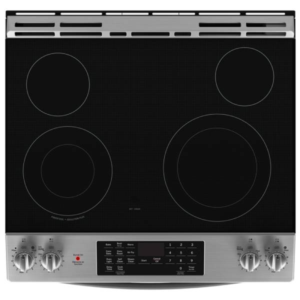 GE JCS830SVSS Electric Range, 30 inch Exterior Width, Self Clean, Convection, 4 Burners, 5.3 cu. ft. Capacity, Storage Drawer, Air Fry, 1 Ovens, Stainless Steel colour True European Convection