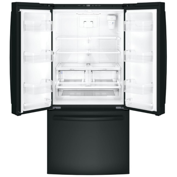 GE GWE19JGLBB French Door Refrigerator, 33 inch Width, ENERGY STAR Certified, Counter Depth, 18.6 cu. ft. Capacity, Black colour ConnectPlus, Frost Guard