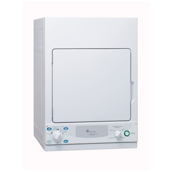 The dryer's compact design makes it versatile for installation in small homes, closets, or other compact laundry areas, ensuring flexibility without sacrificing performance. Its 3.6 cubic foot capacity painted galvanized steel drum efficiently handles full laundry loads, providing effective drying in every cycle.