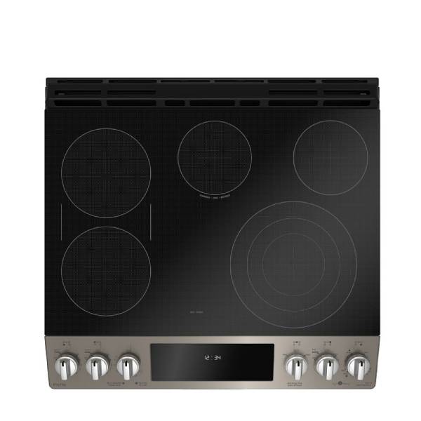 GE Profile PCS940EMES Electric Range, 30 inch Exterior Width, Self Clean, Convection, 5 Burners, 6.3 cu. ft. Capacity, Oven Drawer, Air Fry, 1 Ovens, Slate colour True European Convection, Self Clean Racks