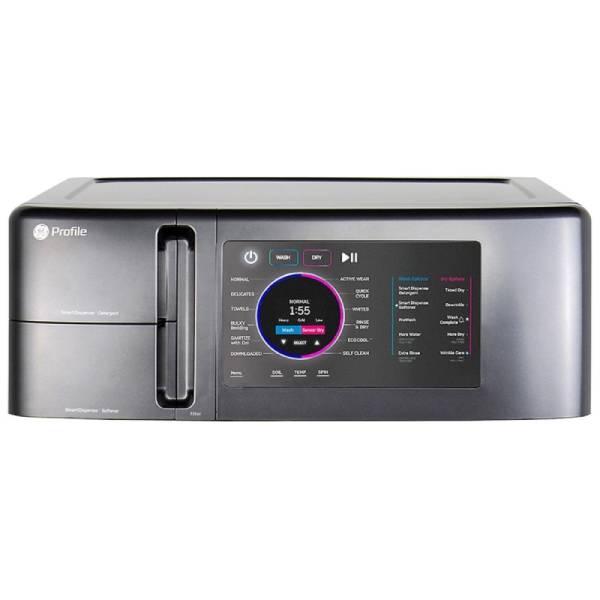 GE Profile PFQ97HSPVDS Front Load Washer, 28 inch Width, 5.5 cu. ft. Capacity, Steam Clean, 12 Wash Cycles, 5 Temperature Settings, 5 RPM Washer Spin Speed, Wifi Enabled, Carbon Graphite colour Eco Coolâ„¢ Cycle, ADA Compliant, EZ Access Lint Filter, SmartDispenseâ„¢ Technology, Dynamic Balancing Technology