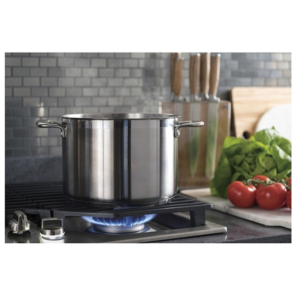 Maximize your kitchen’s potential with continuous cast iron grates, providing ample space for larger pots and pans. For more delicate dishes, the Precise Simmer Burner ensures low, even heat to protect your culinary creations.