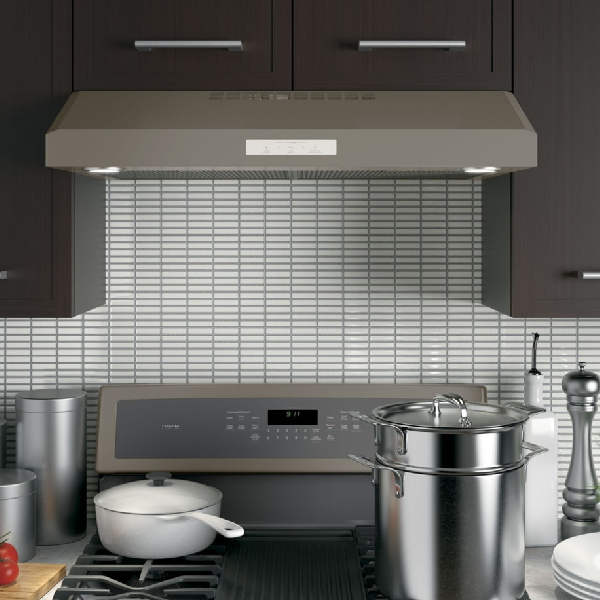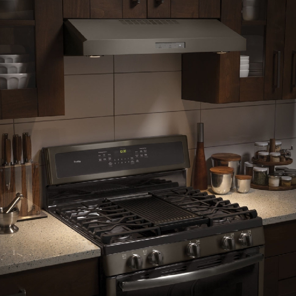 GE Profile PVX7300EJESC Range Hood, 30 Inch Width, Under-Cabinet, 390 CFM, LED Lighting, Dishwasher Safe Filters, Slate Finish