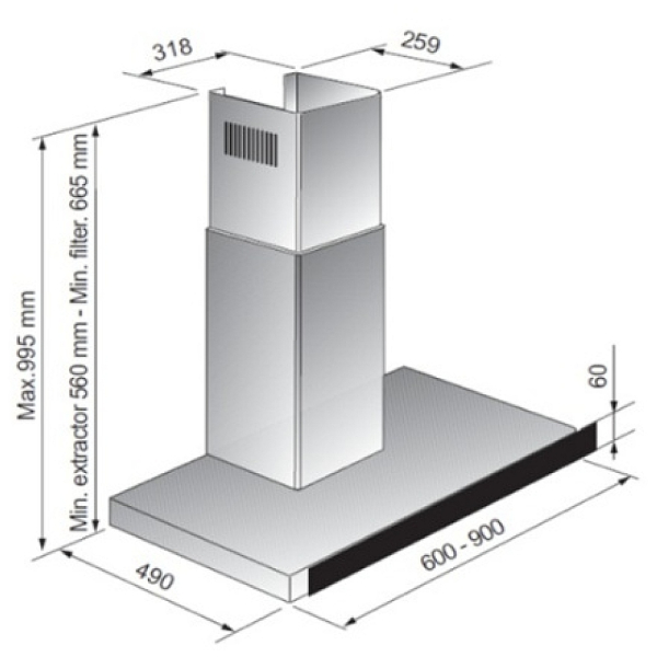 24-inch Exterior Width, Chimney Style, Wall Mounted, Stainless Steel Finish