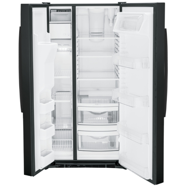 Elevate your kitchen with the GE GSS23GGPBB Side-by-Side Refrigerator, exclusively from Teletime.