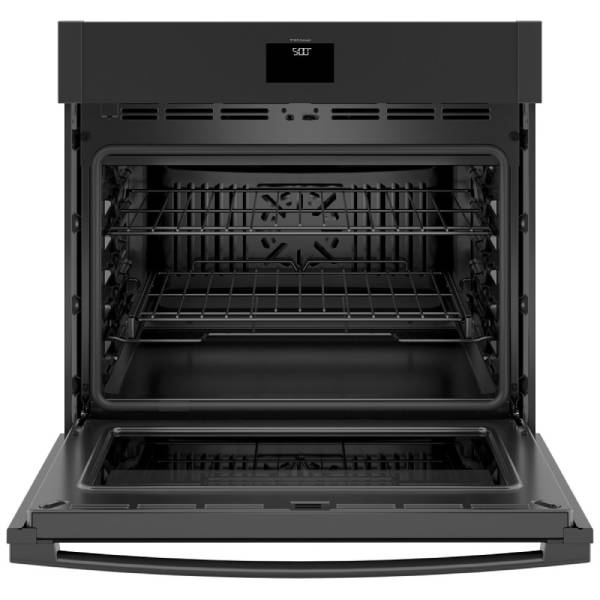 GE JTS5000DNBB Single Wall Oven, 30 inch Exterior Width, Convection, Self Clean, Wifi Enabled, Black colour True European Convection; Temperature Probe; Telescopic Gliding Extension Rack