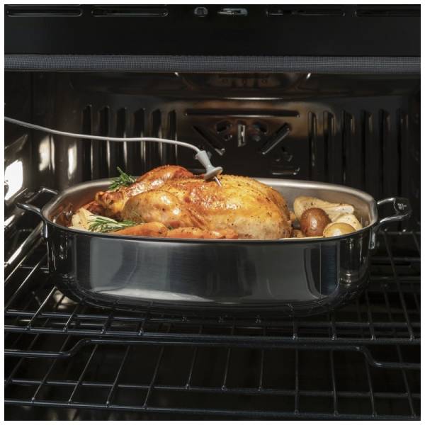 Enjoy the convenience of controlling your oven remotely with the SmartHQ App, which allows you to preheat, monitor, and adjust settings from anywhere. The built-in Remote Temperature Probe ensures that your food reaches the ideal internal temperature, providing real-time readings on your smartphone, giving you peace of mind that every meal is perfectly cooked.