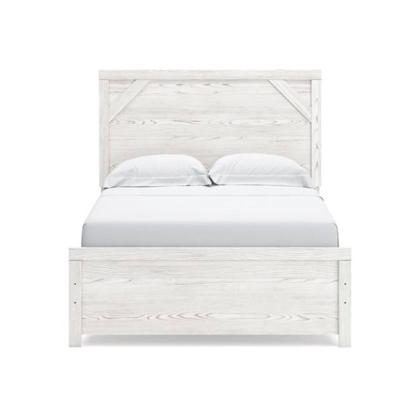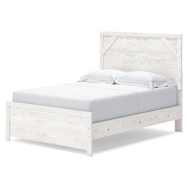 Transform your bedroom into a serene retreat with the Gerridan Full Panel Bed, a sleek and modern piece that exudes both simplicity and sophistication. The bed’s wispy whitewash finish creates a calming ambiance, setting the perfect tone for your personal sanctuary. Framed elements and cross-brace accents enhance the design, adding depth and authenticity to its clean, contemporary profile.