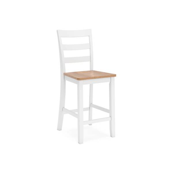 This counter height dining set features a chic two-tone design with a natural mango wood finish and crisp white accents, offering comfort, style, and versatility for everyday use. Seats four.