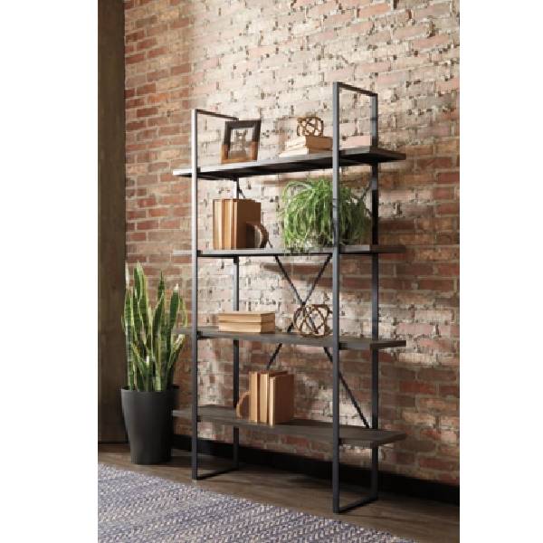 Showcase your books and decor with this stylish bookcase that combines industrial charm with modern flair. Featuring a dark wood and black metal frame, it offers a trendsetting look for any room. The solid wood and engineered wood construction ensure durability, while the four fixed shelves provide ample space for your belongings. Perfect for adding a touch of sophistication to your home office or living area, this bookcase is both functional and fashionable.