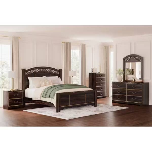 The Glosmount King Poster Headboard is a striking statement piece that brings timeless sophistication and grandeur to your bedroom. Designed with a commanding presence, this headboard features intricately crafted posts that add an air of traditional elegance, while its refined details seamlessly blend with contemporary styling. The rich wood grain finish enhances its luxurious appeal, creating a warm and inviting atmosphere that transforms your bedroom into a personal retreat.
