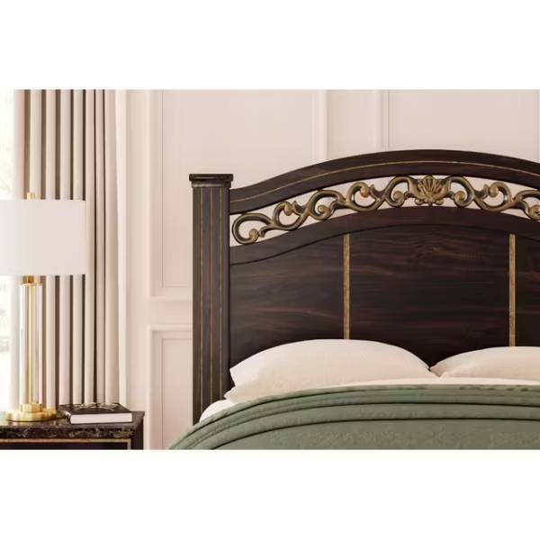 The Glosmount Queen Poster Headboard brings a touch of elegance to your bedroom with its refined design and sturdy construction. Its timeless appeal blends seamlessly with various decor styles, ensuring long-lasting beauty. Crafted for both durability and versatility, this headboard is the perfect statement piece for a sophisticated space.
