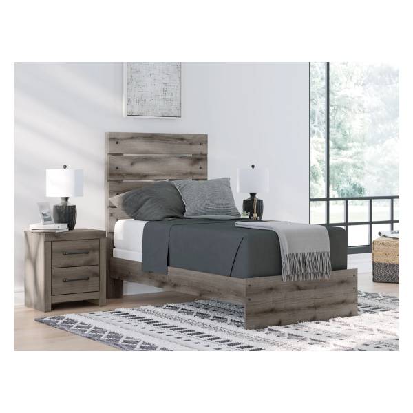 Assembly is required, but it is straightforward and easy to complete, allowing you to enjoy your new bed in no time. Exclusively available at Teletime, the Graystorm Twin Panel Bed combines practicality with style, offering a versatile and charming option for any bedroom decor.
