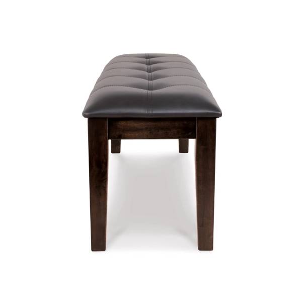 Stylish dining room bench with plush button-tufted faux leather upholstery and cushioned seat. Wood legs provide stability, blending comfort and sophistication to enhance your dining area.