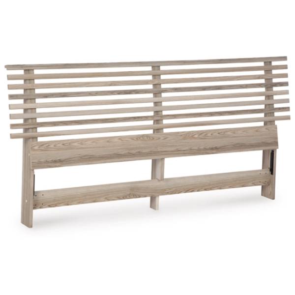 The Hasbrick King Slat Headboard brings a perfect blend of modern design and natural charm to your bedroom. With its clean lines and open slat design, this headboard offers a refreshing take on contemporary style, creating a sophisticated yet inviting atmosphere. The natural finish, complemented by a subtle replicated wood grain, enhances its casual simplicity, making it an excellent addition to any bedroom decor. Whether paired with minimalist furnishings or cozy textures, this headboard delivers a refined yet relaxed aesthetic.