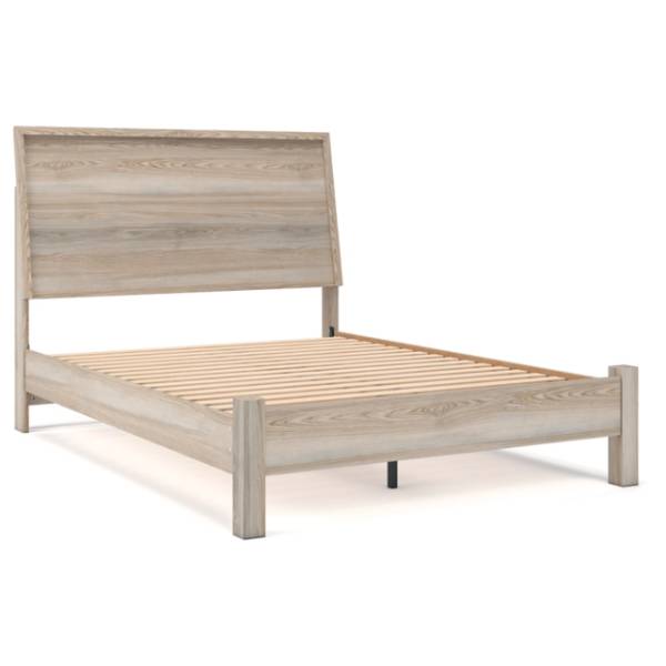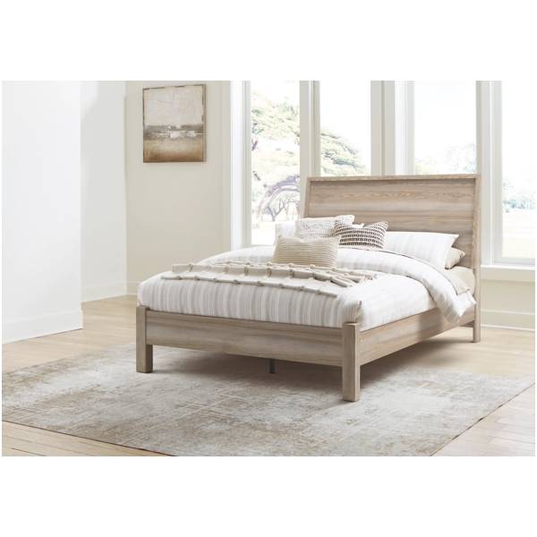 The Hasbrick Queen Panel Bed effortlessly blends modern design with neutral sophistication, transforming your bedroom into a stylish and inviting retreat. Featuring clean lines and an open slat headboard, this bed adds an eye-catching focal point to your space, elevating the aesthetic of the room. The natural finish, paired with a subtle replicated wood grain, exudes casual simplicity while creating a warm and inviting atmosphere. This versatile design offers a refreshing take on contemporary bedroom furniture, making it a perfect addition to any modern home.