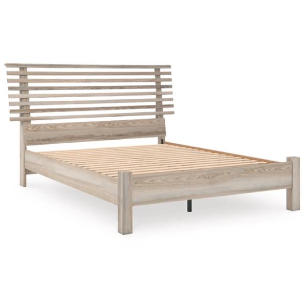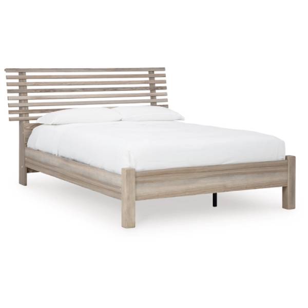 The Hasbrick Queen Slat Panel Bed offers a refined blend of modern style and understated sophistication, making it the ideal centerpiece for any bedroom. With its clean, sharp lines and open slat headboard, this bed introduces a visually striking design that draws attention while maintaining a sense of simplicity. The natural finish, combined with a subtle replicated wood grain, exudes an inviting, casual charm that creates a stylish and serene retreat. Its neutral palette effortlessly complements a variety of interior styles, offering flexibility and timeless appeal.