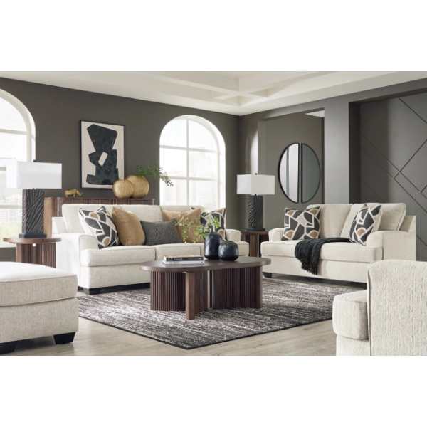 The neutral upholstery is not only visually appealing but also versatile, allowing it to blend seamlessly with various décor styles. Its clean lines and subtle curves add a touch of elegance to any room. Whether you're entertaining guests or enjoying a quiet evening, the Heartcort Sofa, Loveseat, Chair, and Ottoman set offers both style and functionality, making it a valuable addition to your home
