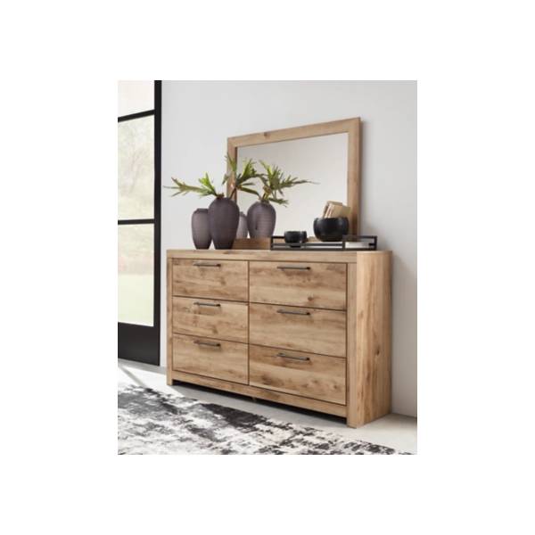 Elevate your bedroom with the Hyanna Dresser and Mirror set, exclusively available at Teletime. Inspired by the raw beauty of nature and refined with modern craftsmanship, this set blends warmth, functionality, and timeless charm. The dresser showcases a golden rustic finish over a replicated oak grain that captures an inviting, organic aesthetic with an authentic touch. Its six smooth-gliding drawers offer generous storage, each lined with a faux linen laminate interior for a clean, polished look.