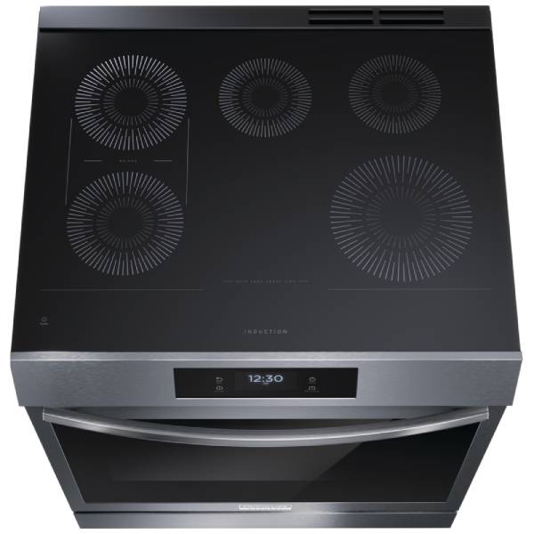 Frigidaire Gallery GCFI306CBD Induction Range, 30 inch Exterior Width, Self Clean, Convection, 5 Burners, 6.2 cu. ft. Capacity, Storage Drawer, Air Fry, 1 Ovens, Black Stainless Steel colour Steam Cooking, Air Sous Vide, Temperature Probe