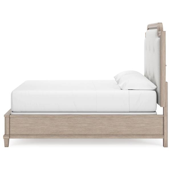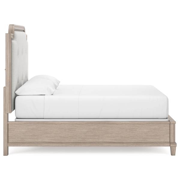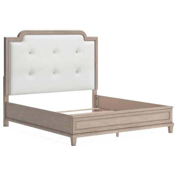 Whether your bedroom style is contemporary, classic, or somewhere in between, the neutral tones of the Jarlee King Upholstered Panel Bed allow it to complement a wide range of decor styles. The bed requires a foundation or box spring, sold separately, for mattress support. Both mattress and foundation are available at Teletime. Assembly is required, with an estimated time of 10 minutes. With its inviting design and timeless appeal, this bed offers the perfect combination of function and elegance for your bedroom sanctuary.