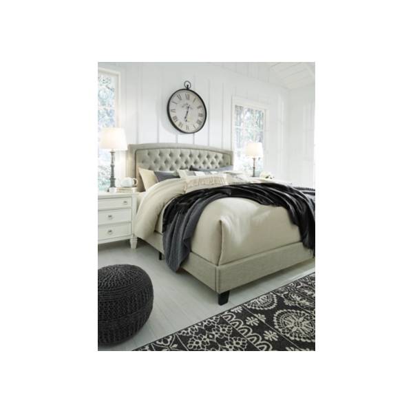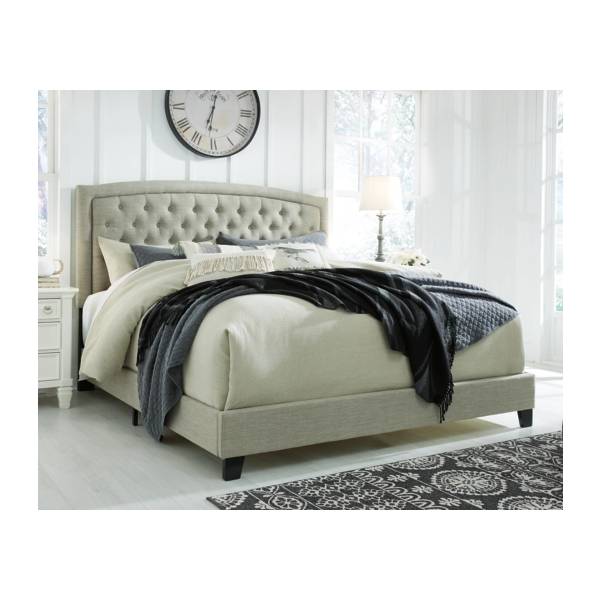 The Jerary King Upholstered Bed, available exclusively at Teletime, brings luxurious comfort and stylish design together in one stunning package. Its fresh, clean lines and luxurious details create a relaxing environment, perfect for a peaceful night’s sleep in your personal sanctuary.