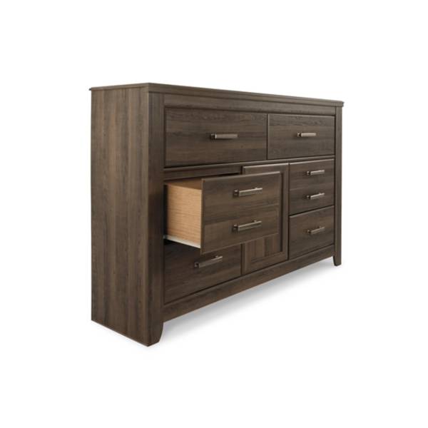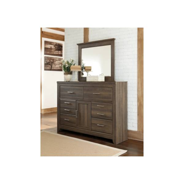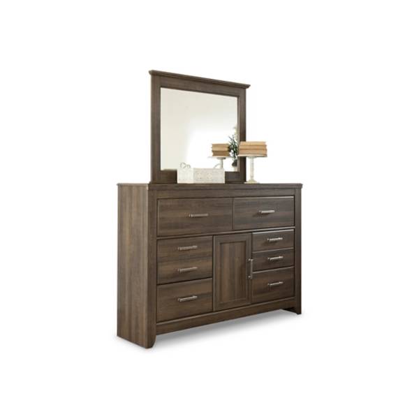 The Juararo Dresser and Mirror set captures a warm, rustic appeal with its rich vintage finish.Crafted for durability, it offers generous storage space with a traditional design aesthetic.The coordinating mirror completes the look, adding functionality and classic elegance to your bedroom.