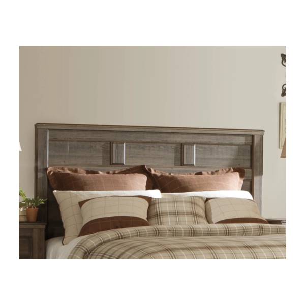Elevate your bedroom with the timeless charm of the Juararo Queen Panel Headboard. Designed to replicate the beauty of aged barn wood, its rich brown finish over a rough-sawn oak grain delivers a rustic yet sophisticated appeal. This headboard exudes warmth and character, reminiscent of a cherished family heirloom, making it a perfect addition to any cozy retreat.
