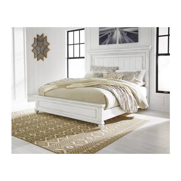 The Kanwyn California King Panel Bed brings timeless vintage charm to your bedroom, offering a perfect blend of rustic beauty and refined elegance. Finished in a distressed whitewash, this bed radiates a soft, weathered appeal that creates a serene and welcoming atmosphere. The headboard features a striking picture-framed panel, adding a touch of sophistication to its grand design. This elegant detail captures the essence of classic craftsmanship, elevating the overall aesthetic of your space.